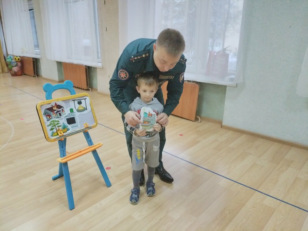Вячеслав Владимирович рассказал детям о том, как важно быть осторожными дома, что может быть опасным, и как вести себя, если вдруг случится беда, провел с детьми интересные и познавательные игры по основам безопасности. Всё было не только поучительно, но и весело! А ещё каждый мог задать вопрос и рассказать, что он уже знает о правилах безопасности. В завершении встречи дети получили познавательные книжки по пожарной безопасности.