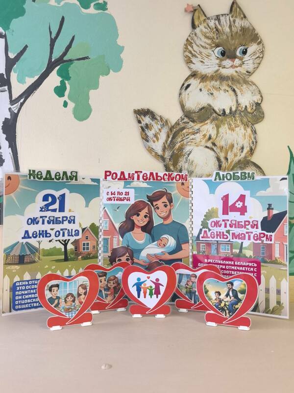 С 13 по 26 октября 2025 года в Республике Беларусь проходит Неделя родительской любви, приуроченная к празднованию 14 октября Дня матери и 21 октября Дня отца. Наш детский сад присоединился к проведению мероприятий с воспитанниками. Все мероприятия, запланированные в рамках Недели, будут направлены на формирование у воспитанников и их родителей традиционных семейных ценностей, уважительного отношения к родителям (старшему поколению), понимания важности семьи в жизни человека и общества, укрепление сотрудничества и взаимодействия между семьями детей и учреждением образования.