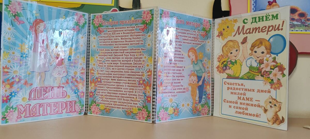 Педагоги учреждения в честь праздника украсили окна в раздевальных ячейках и подготовили для родителей яркие панорамы и красочную наглядную информацию.