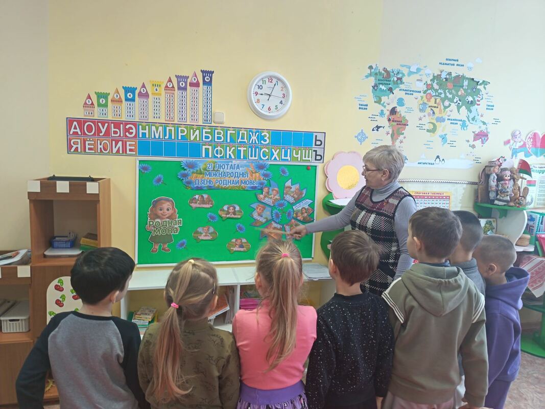 Дзеці з радасцю ўдзельнічалі ў цікавых мерапрыемствах: тэматычных гутарках, драматызацыі казкі "Зайкава хата", гулялі ў народныя гульні ("Шэры кот", "Гарлачык", чыталі вершы пра родную мову.